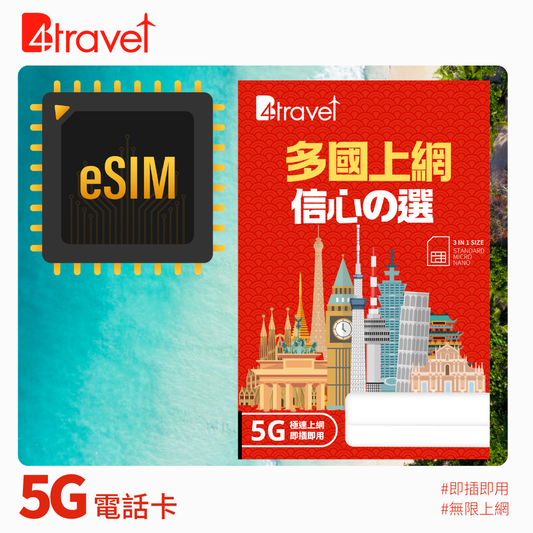 B4travel 歐洲 9日 20GB 5G 無限上網數據卡