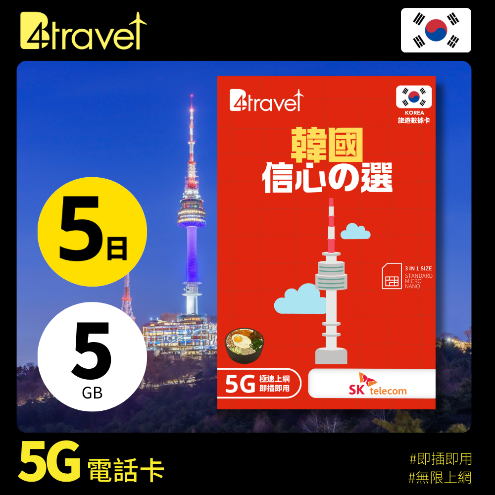 B4travel 韓國 5日 5GB 5G 無限上網卡