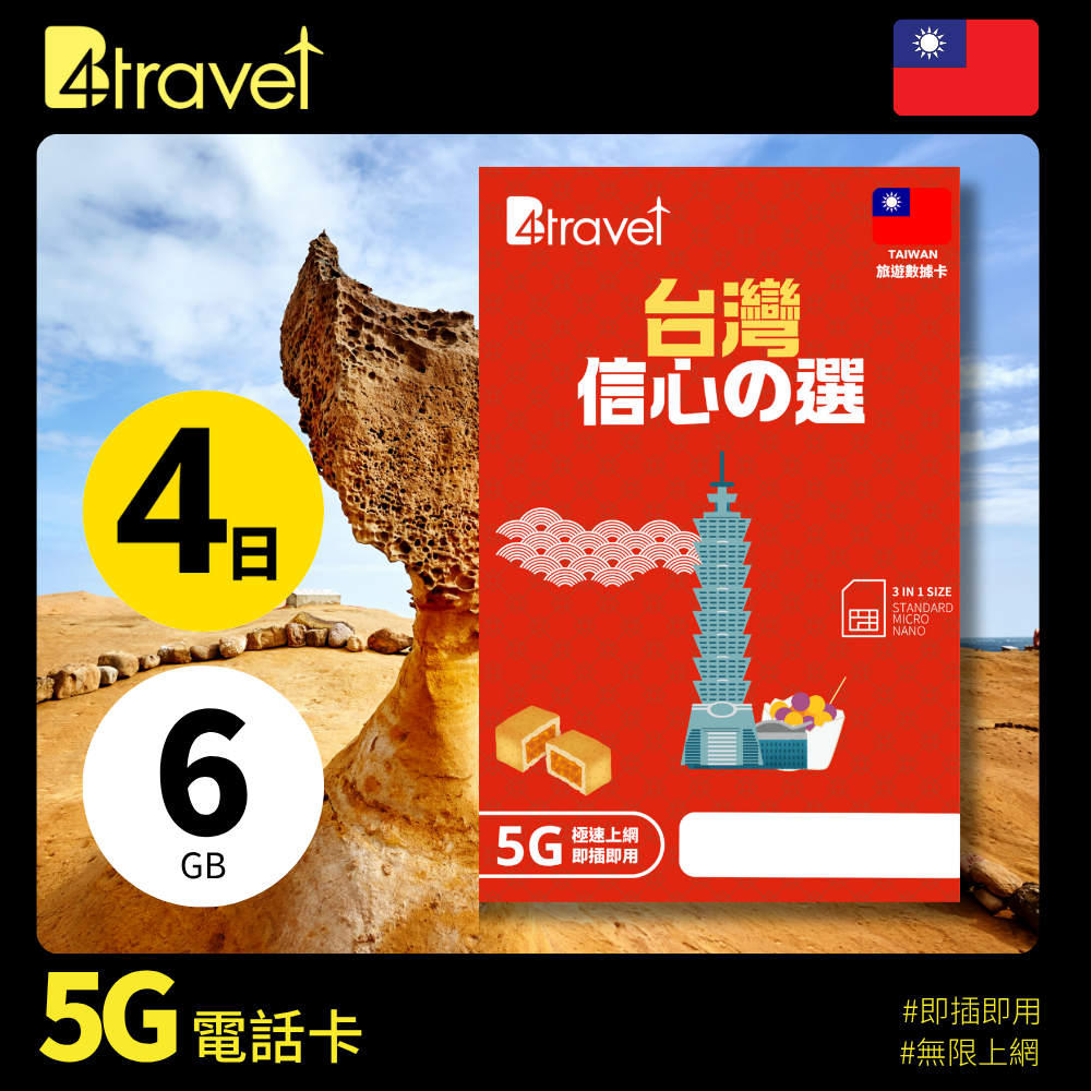 B4travel 台灣 4日 6GB 5G 無限上網數據卡