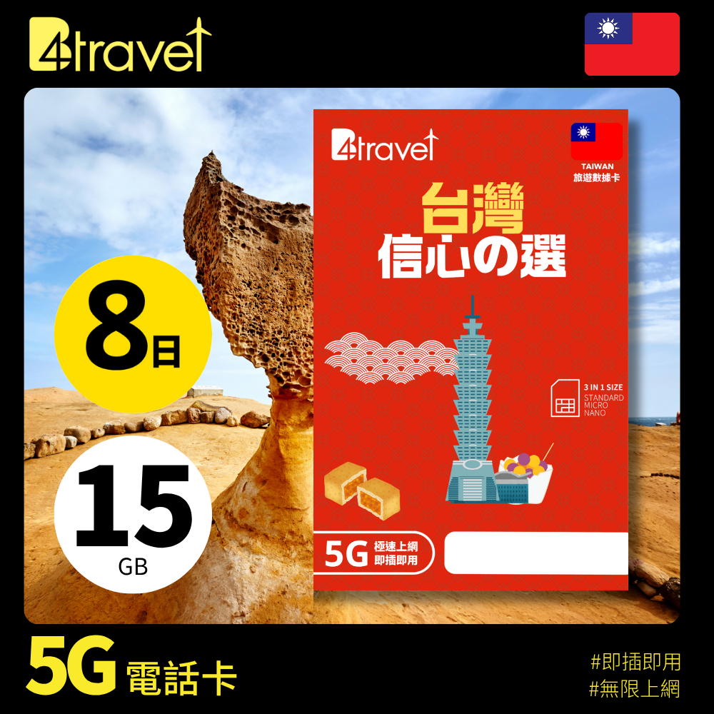 B4travel 台灣 8日 15GB 5G 無限上網數據卡
