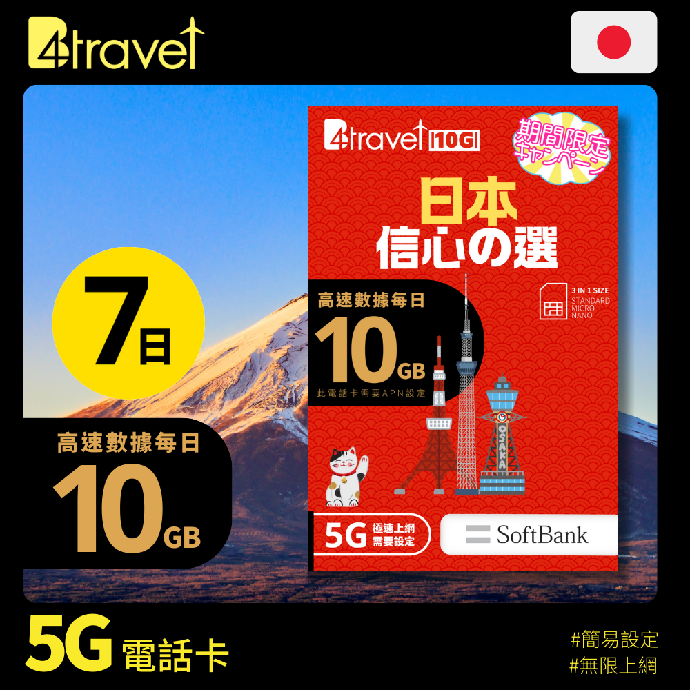 B4travel Plus 三網絡 日本 7日 10GB 5G 無限上網卡定價 HK$138定價單價 每HK$138售價 HK$138